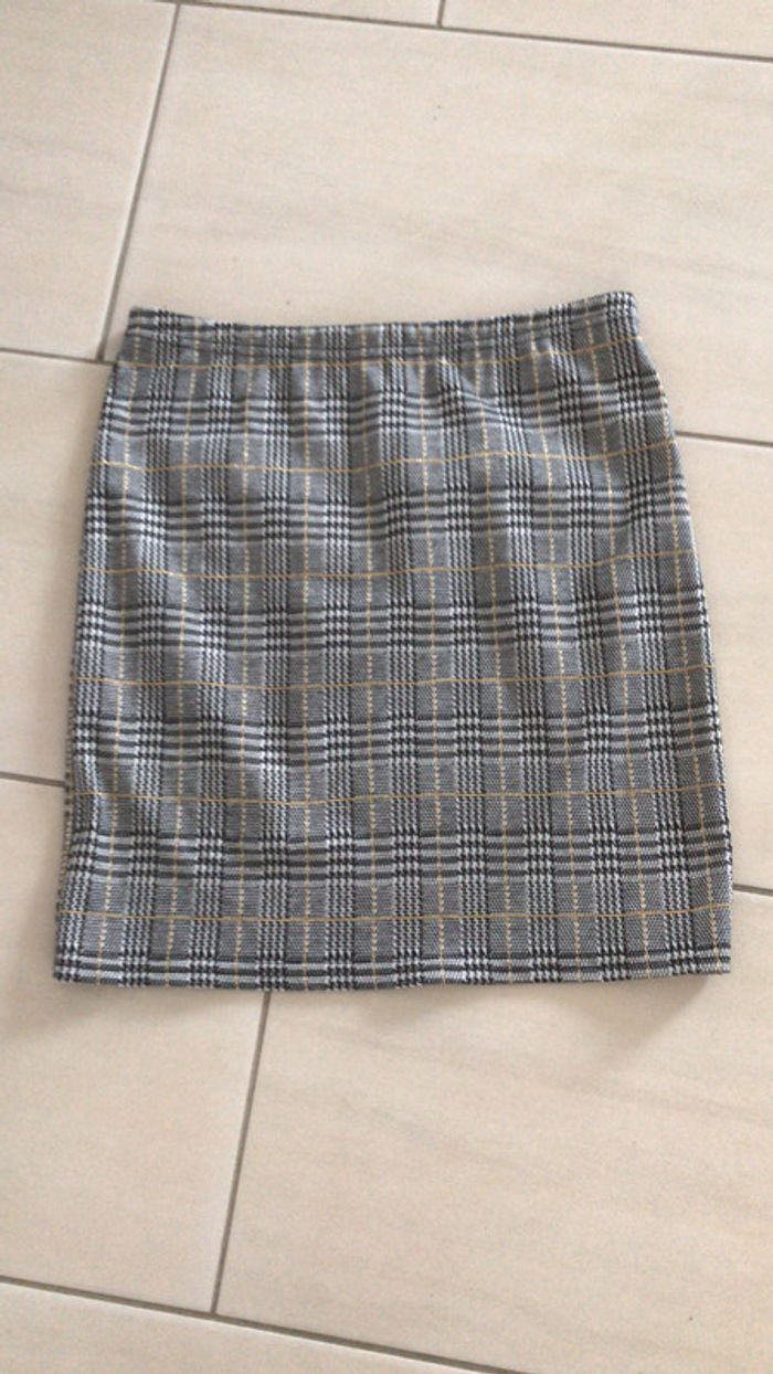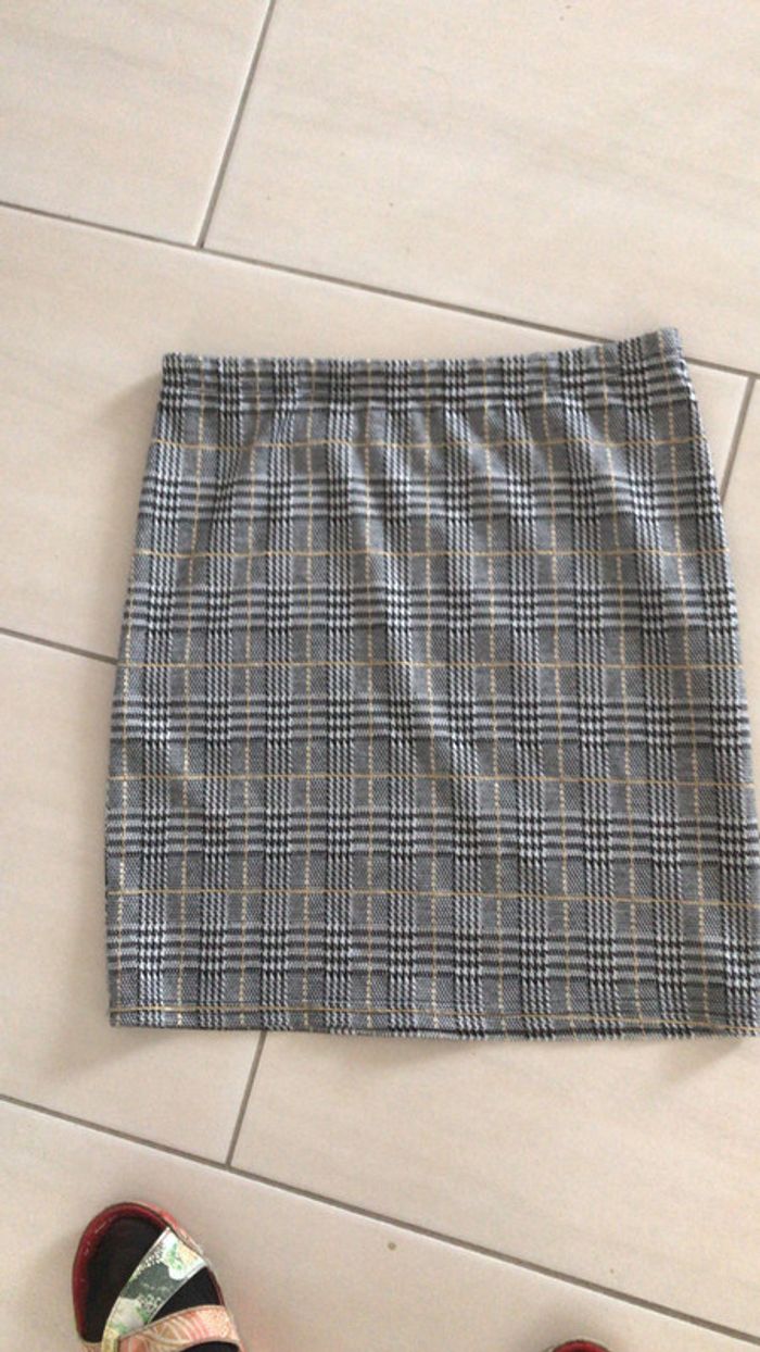 jupe simple droite avec élastique à la taille longueur 45cm avec un petit fil doré
