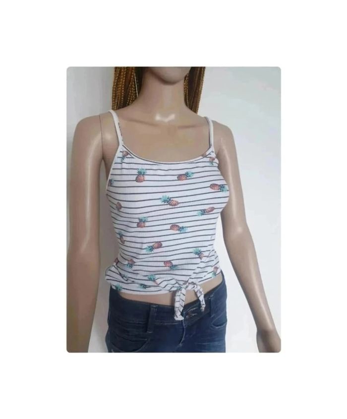 🎀 Crop top motif ananas 🎀 Rayé 🎀 Avec noeud 🎀 Très bon état 🎀 Réductions sur lots activées