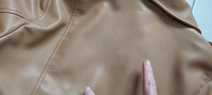 .Veste simili cuir Taille XL Une mini imperfection sur le devant près d'une poche voir photo 2 imperfections sur l'arrière voir photo Manque la ceinture #carineddiXLfemme