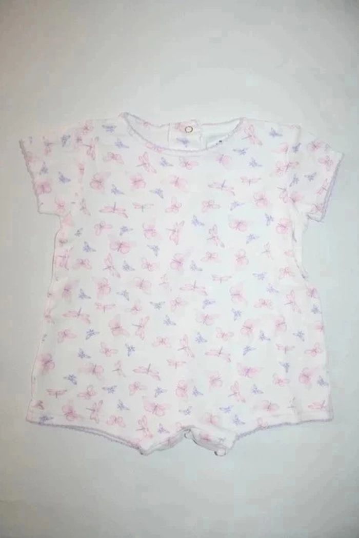 Barboteuse en coton blanche motifs papillons, pressions à l'entrejambe, taille 3/6 mois (60g)