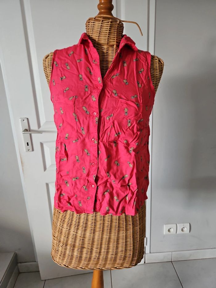Débardeur chemisier rose Motif ananas Bershka N'hésitez pas à aller voir mes autres ventes classées par #eloio #eloiobershka #eloiofemme #eloiofemmes