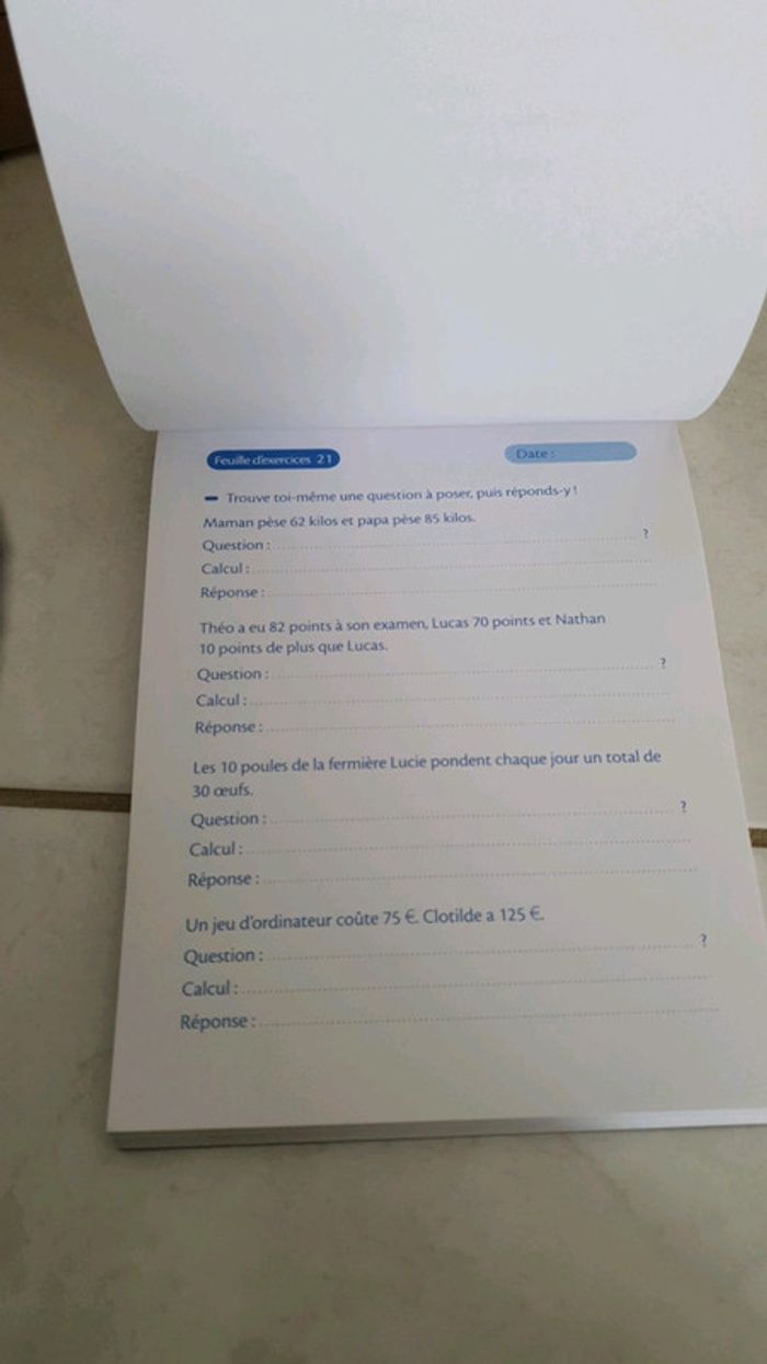 Feuilles d'exercices problèmes avec feuilles détachables 8/9 ans C'est Neuf #eloioneuf #eloioscolaire