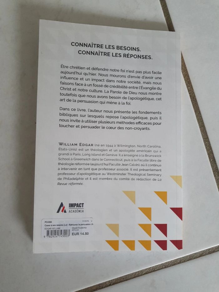 Livre Le cœur à ses raisons Retrouver la persuasion chrétienne William Edgar N'hésite pas à aller voir mes autres ventes classées par #eloio #eloiolivre