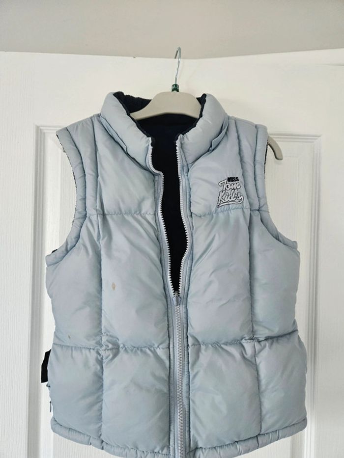 Doudoune sans manches chaude réversible Le côté bleu marine est polaire Mais 2 tâches sur le côté bleu clair cf photo N'hésitez pas à aller voir mes autres ventes classées par #eloio #eloiofille8ans