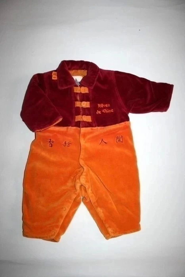 Combi en velours Sergent Major 3 mois, molletonnée, "Rêves de chine"
