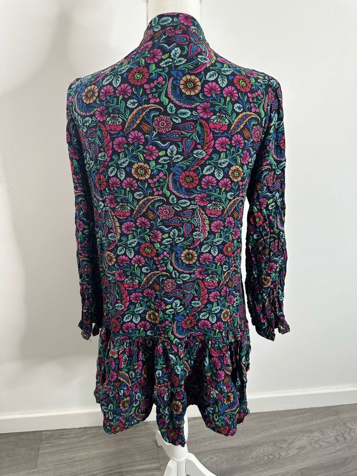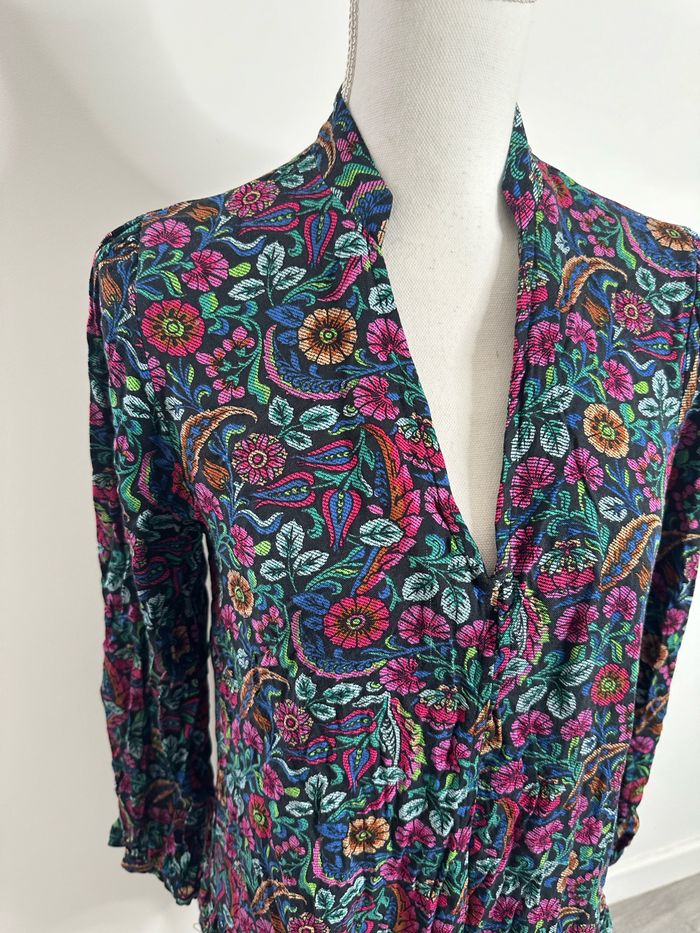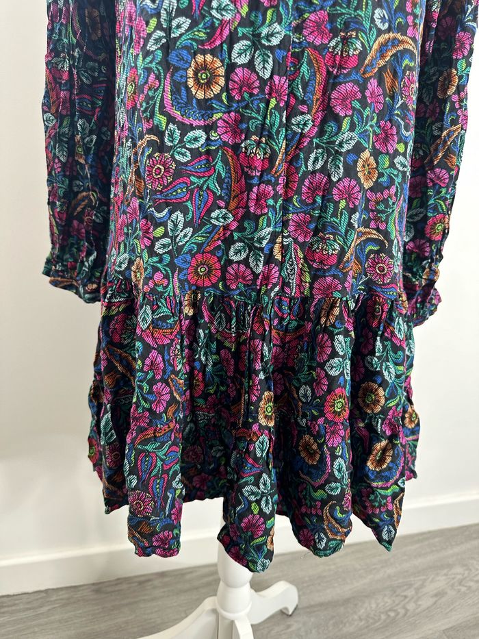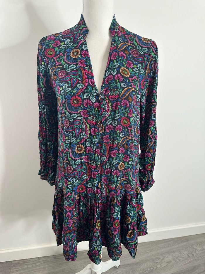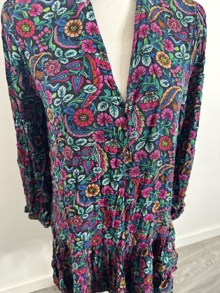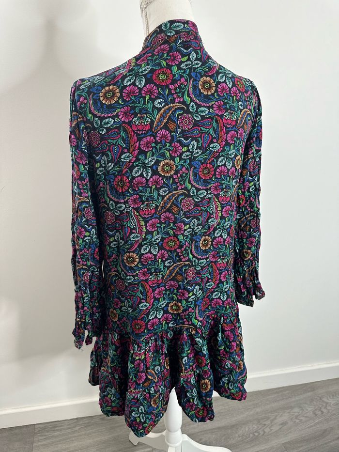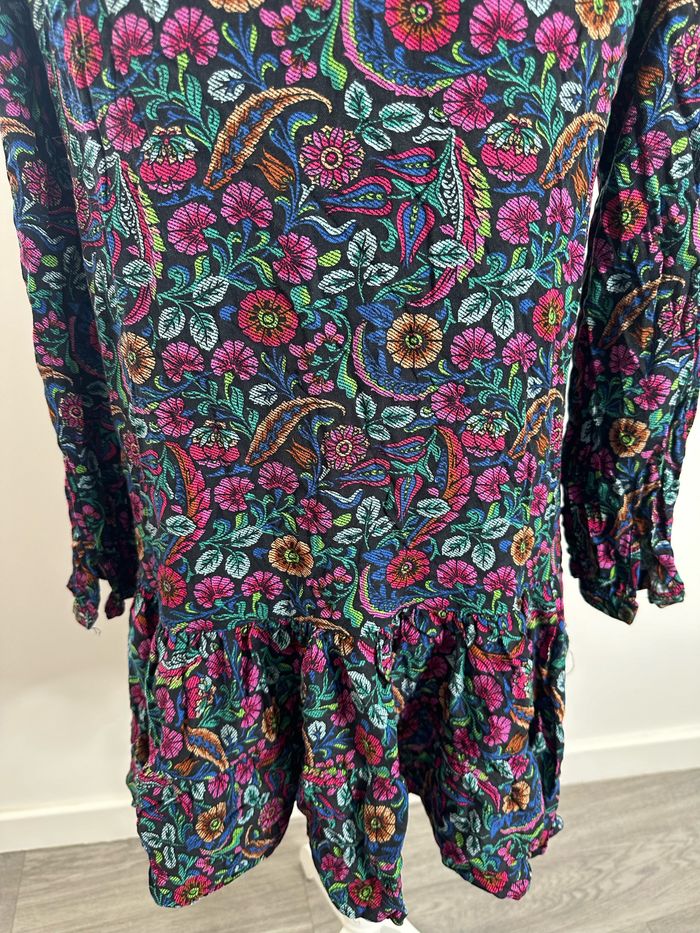 Robe - Excellent état - Taille 36 équivalent S - Multicolore - Imprimés fleurs Paisley - Manches longues - Col en V - Volant large sur le bas - Pas d’étiquette de matière Dimensions: - 48cm niveau aisselles - 80cm de long