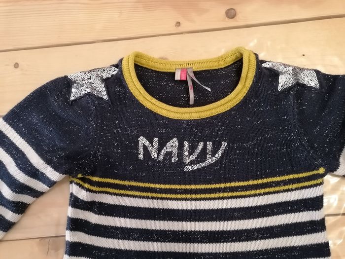 Pull mi saison couleur marine pailleté avec étoiles sur les 2 épaules