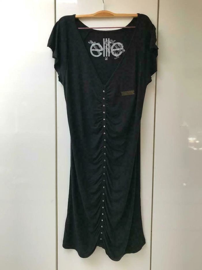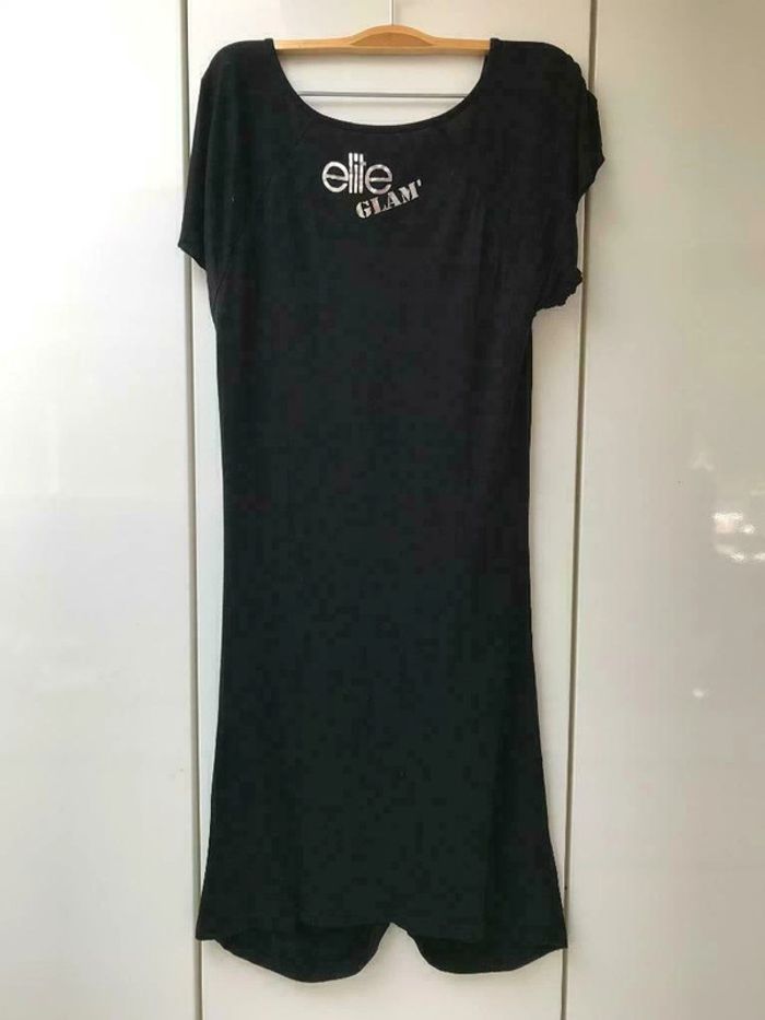 Robe noire Elite Taille M La mesure d'aisselle à aisselle est de 42 cm. La longueur est de 82 cm.