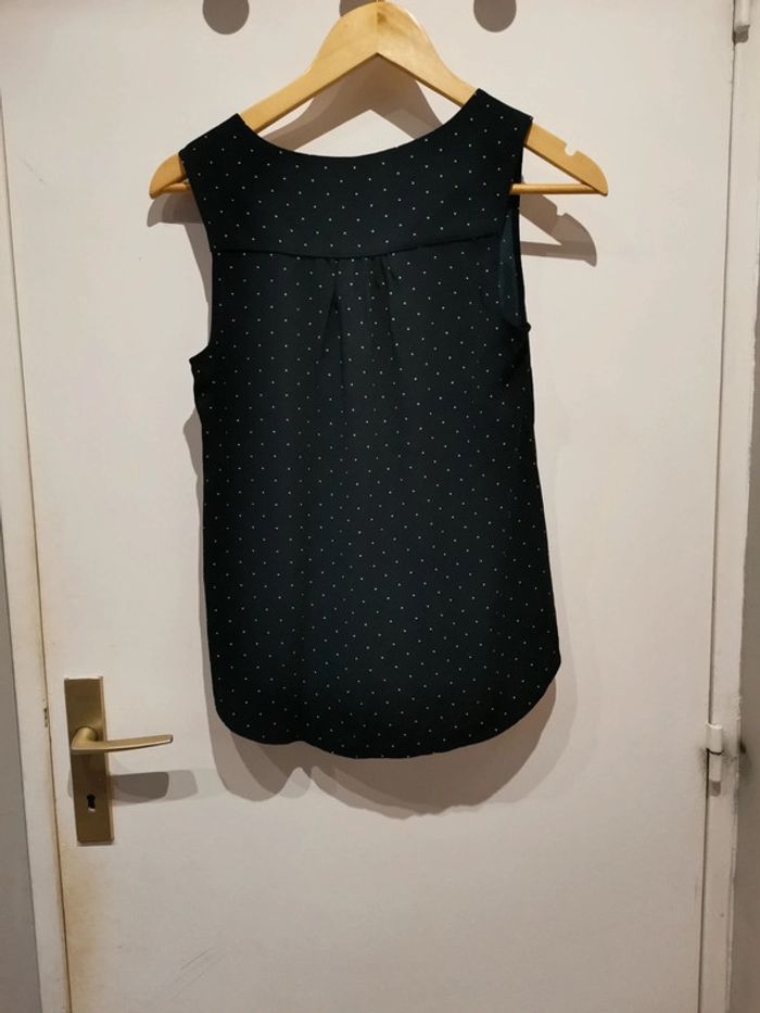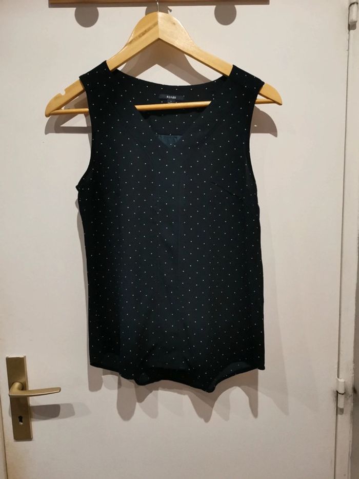 Débardeur femme, bleu marine à pois blancs, taille S, marque Kiabi, bon état
