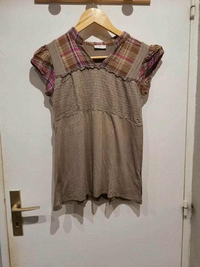 Tee-shirt femme beige, taille M (2), marque Cache Cache, bon état