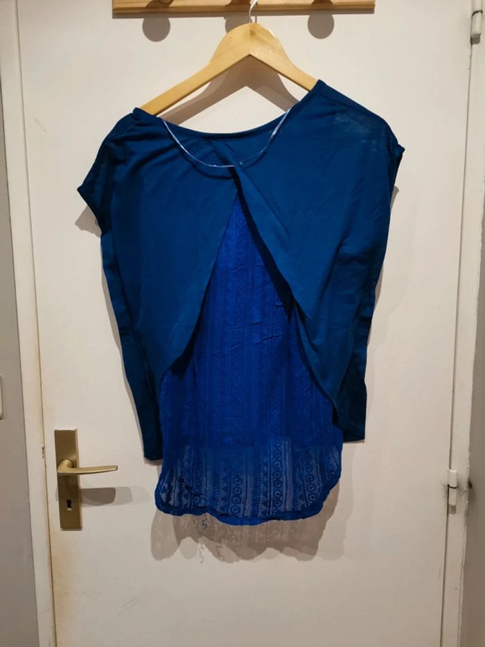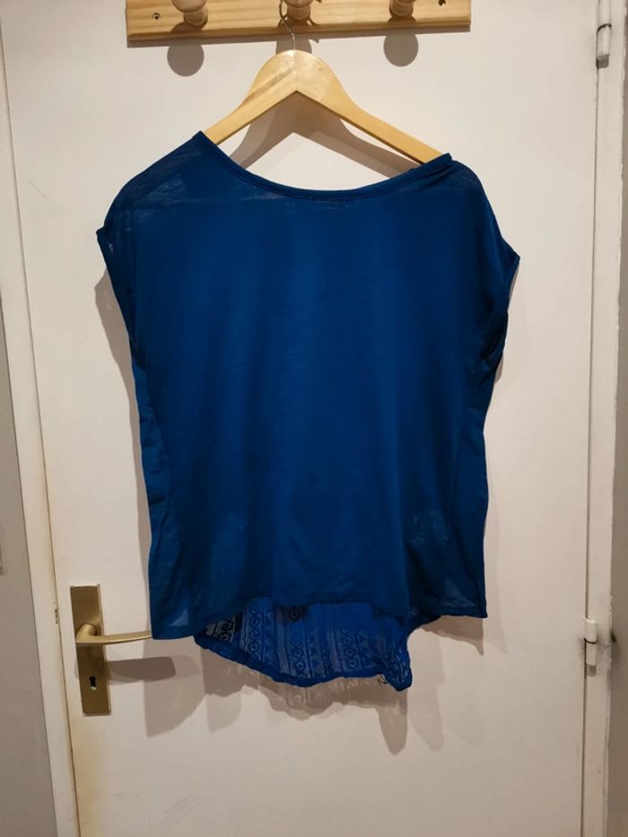 Tee-shirt femme bleu, dos travaillé, taille S, marque Kiabi, bon état