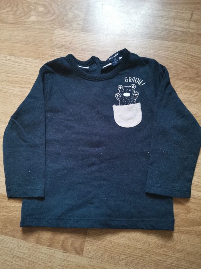 Tee-shirt manches longues taille 6 mois, motif ours, marque Kiabi