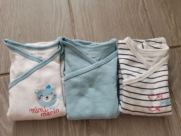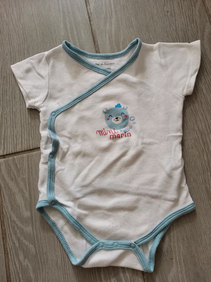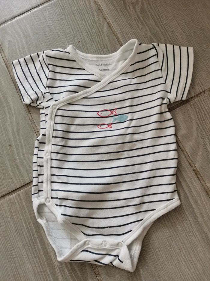 Lot de 3 bodies manches courtes, thème marin, marque Pat et Ripaton, taille 12 mois