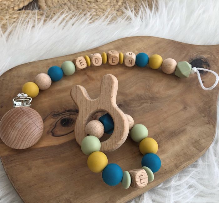 Un joli duo attache tétine et anneau de dentition 👶 n’hésitez pas pour les couleurs création unique