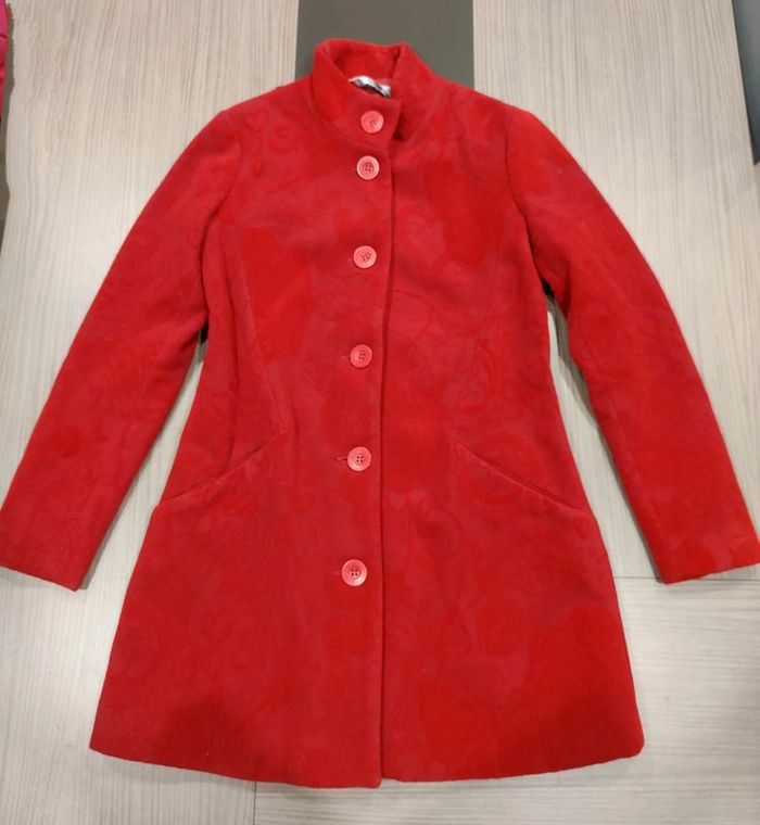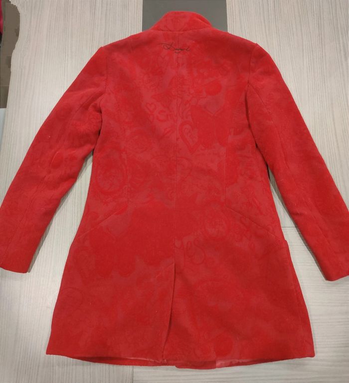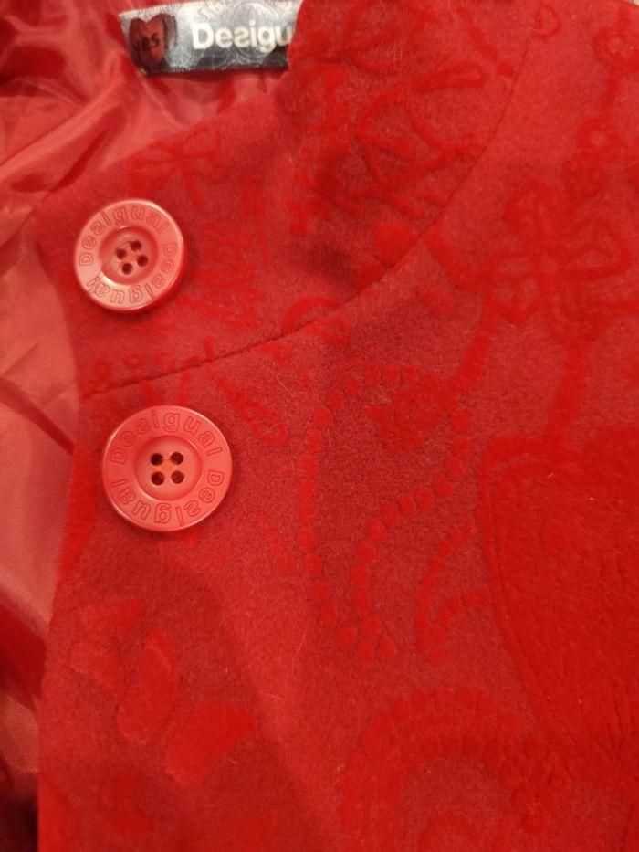 Magnifique manteau Desigual chic et cintré. Imprimés motifs en relief velour. Entièrement doublée satiné. Très bon état