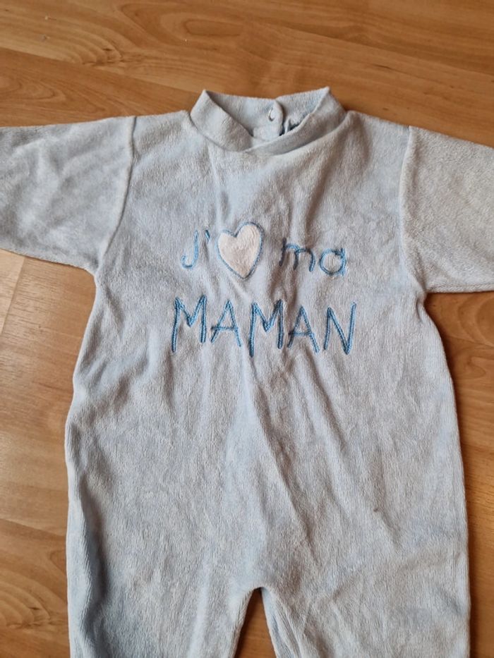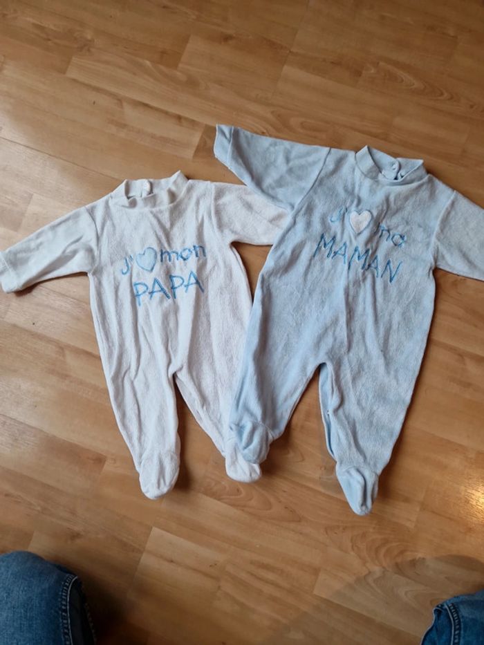 Lot de 2 pyjamas 3mois "j'aime mon papa" "J'aime ma maman" Mixte N'hésitez pas à venir vers moi car tous les articles bébé/enfants (fille+garcon) ne sont pas mis en ligne ⚠️👶🏼 Réductions sur lot dans mon dressing 💰 #3mois #bebegarcon #loneiaagarçon3mois #pyjamas #doudoune3mois #hiver #chaud #velour #loneiaafille3mois #mixte
