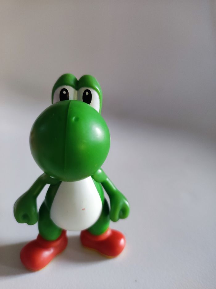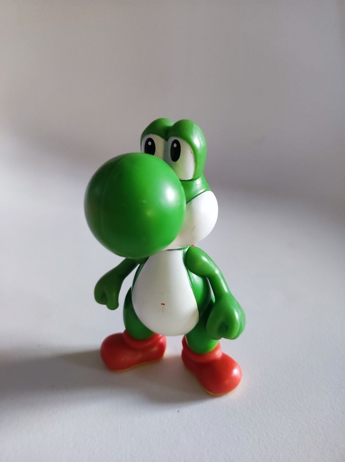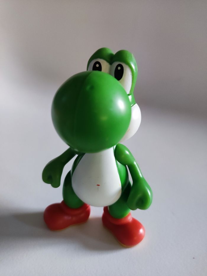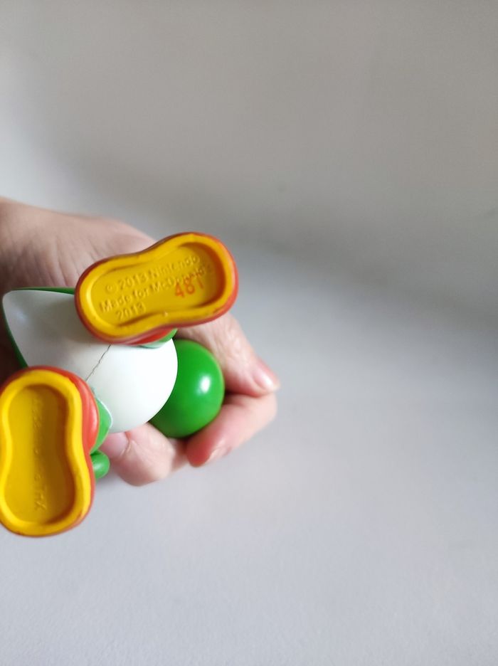 Figurine jouet Personnage yoshi de Nintendo Produit en 2013 pour les happy meal mcdonald's Tamponné au pied : 2013 Nintendo / made for mcdonald's 2013. Ce petit dino vert & blanc est le compagnon idéal de Mario bross 9 cm de hauteur Peut faire un très beau cadeau de Noël ;) Ps : l'article ne presente aucun défaut ( les taches sur les photos etaient du crayon de couleurs et ont été nettoyees )