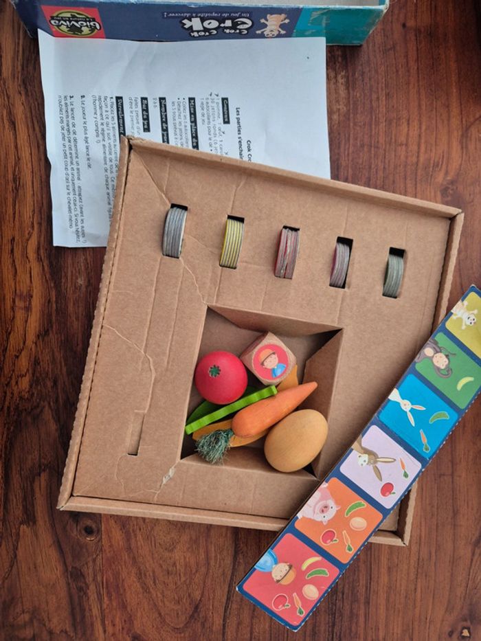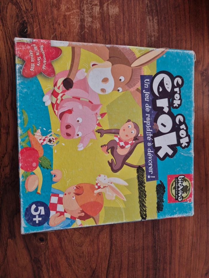 Playa playa complet état proche du neuf Crok crok crok beaucoup plus de vécu... boîte abîmée, nombreuses marques d'utilisation, manque un jeton banane et un des jetons a été recollé. Objets en bois et dé (choses principales du jeu) en très bon état par contre.