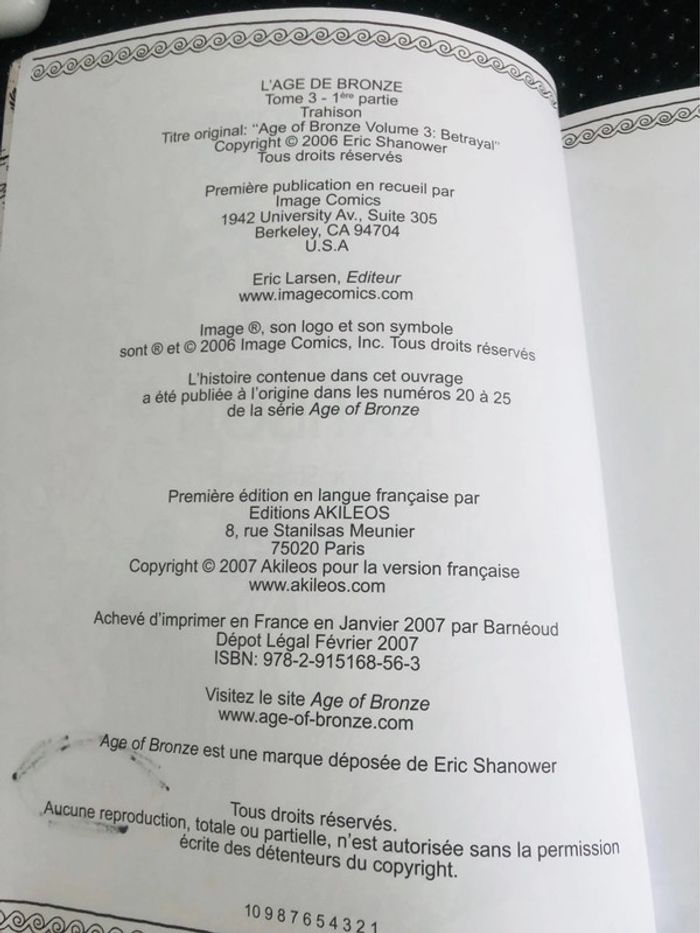 BD l’âge de bronze Tome 3: trahison, 1ere partie Couverture souple 120 planches Excellent état Ancien volume de bibliothèque (photos)