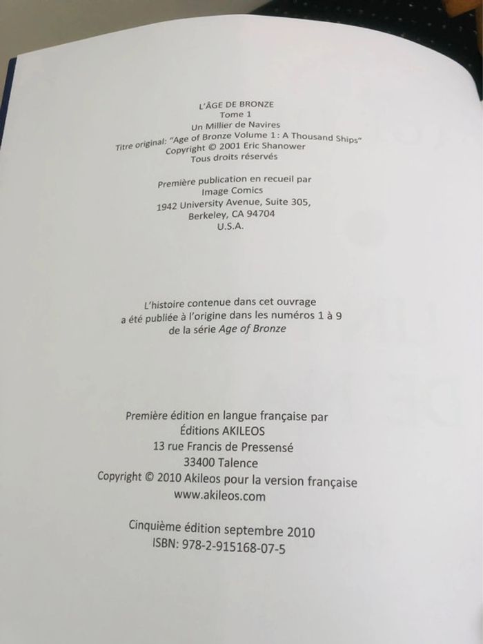 BD l’âge de bronze Tome 1: un millier de navires Couverture souple, 207 pages Ancien volume de bibliothèque (photos), état neuf