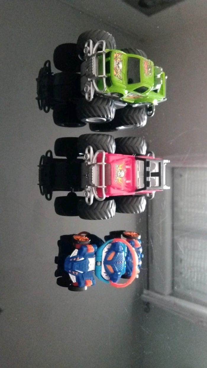 Lot de 3 voitures 1 voiture "boule" de la marque Mattel, elle se déplie en appuyant sur le bouton ou en la lançant.