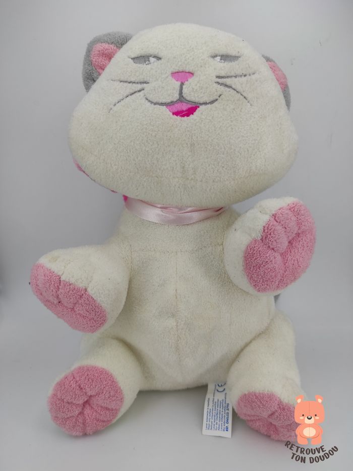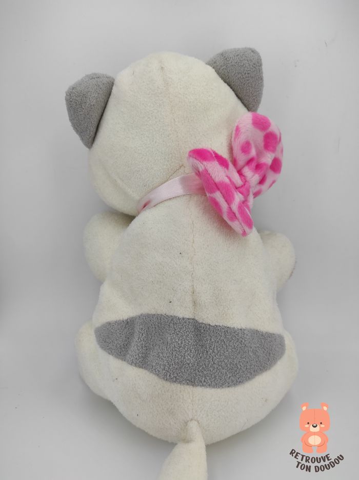 🐈 Peluche Chat Blanc Gris avec pattes et nœud de papillon rose Quiron 📏 Dimension : 30 cm environ ✨ État : Occasion, très bon état 🧼 Lavé avec lessive hypoallergénique 👀 Vous achetez le doudou que vous voyez sur les photos.