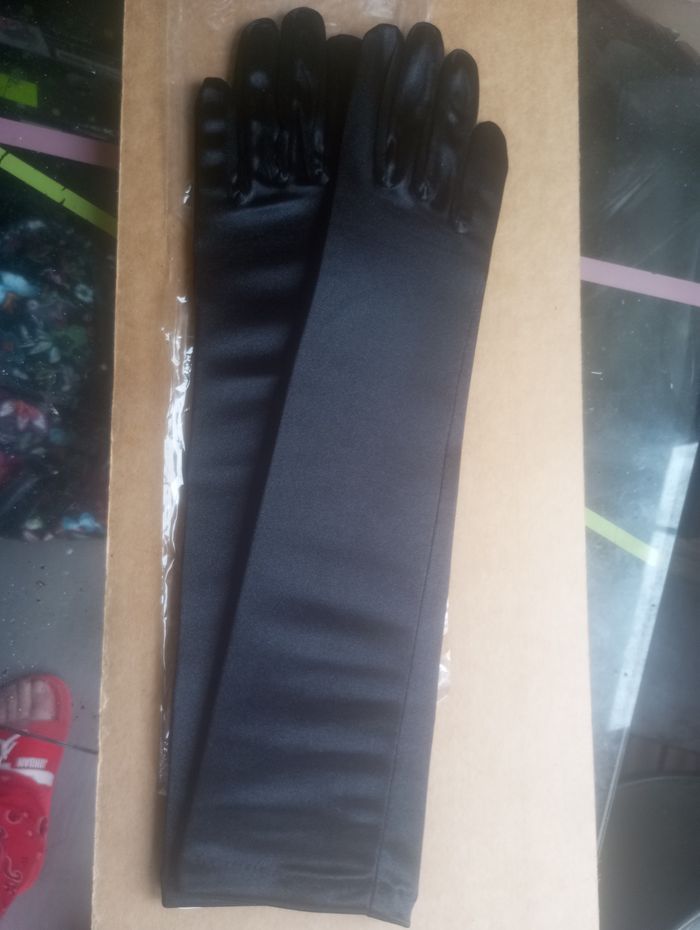 Long gant arrive au coude elastiqué taille unique jusqu'à un taille L noir brillant