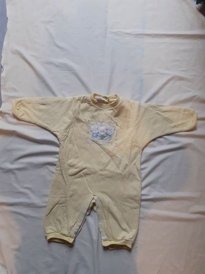 Combinaison jaune à pois motif animaux blancs 6 mois