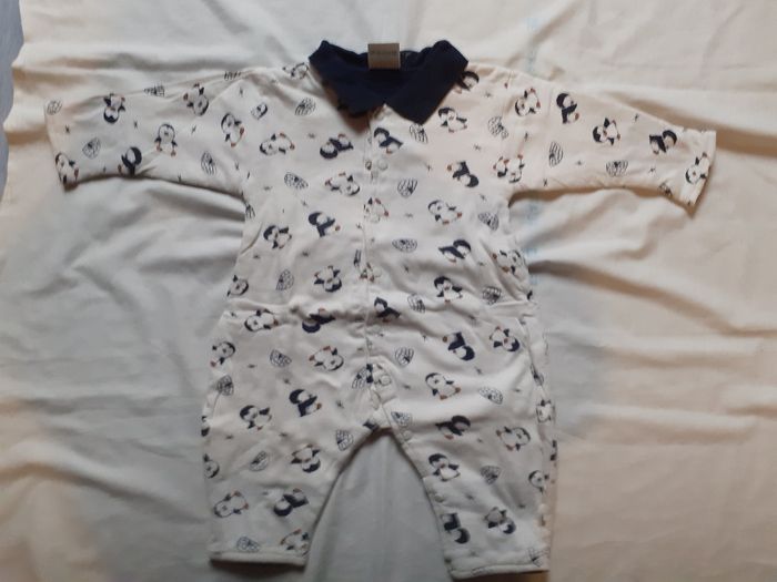 Combinaison blanche motifs pingouins marine 6 mois