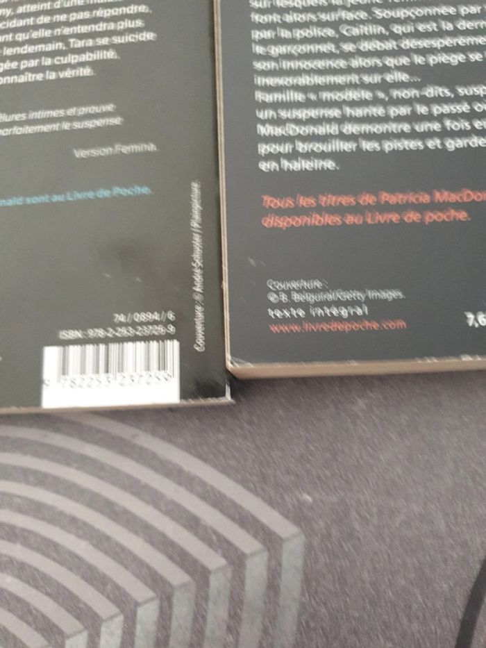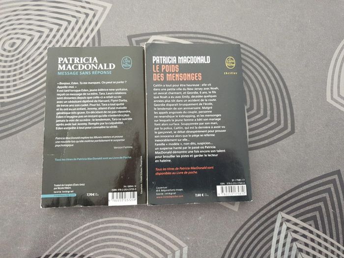 Lot de 2 livres de Patricia Macdonald : - Message sans réponse - Les poids des mensonges Les coins sont légèrement abîmés (voir photos). #pamdu79_livres_polars #pamdu79_livres_1euros
