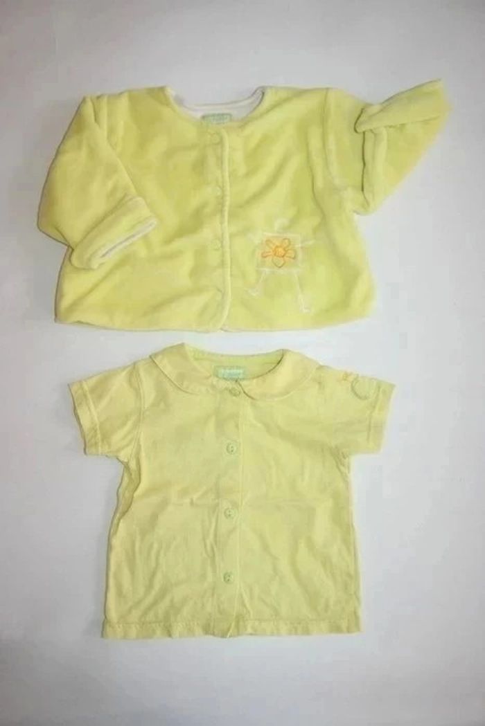 Ensemble Marèse 3 mois composé d'une veste en velours vert anis réversible et d'un polo manches courtes, 180g