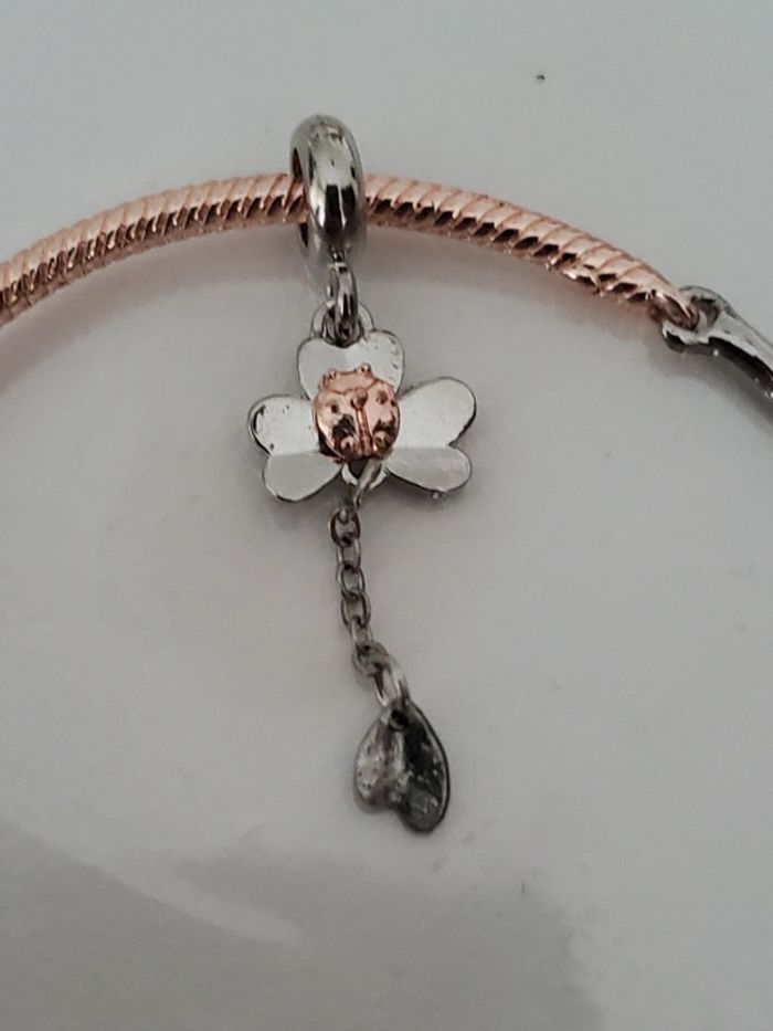 Charms pour bracelet avec chaine trèfle coccinelle et chaine