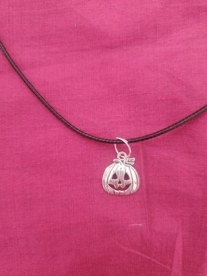 Collier cordelette cuir et pendentif citrouille - photo numéro 2