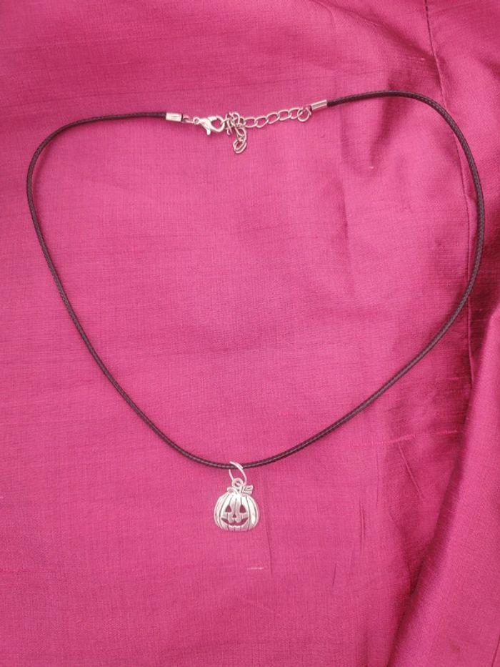Collier cordelette cuir et citrouille argentée 🌸🌸🌸🌸🌸🌸🌸🌸🌸🌸🌸🌸🌸🌸🌸🌸🌸🌸 Acier - jamais porté #bijoux76210bijoux 🌸🌸🌸🌸🌸🌸🌸🌸