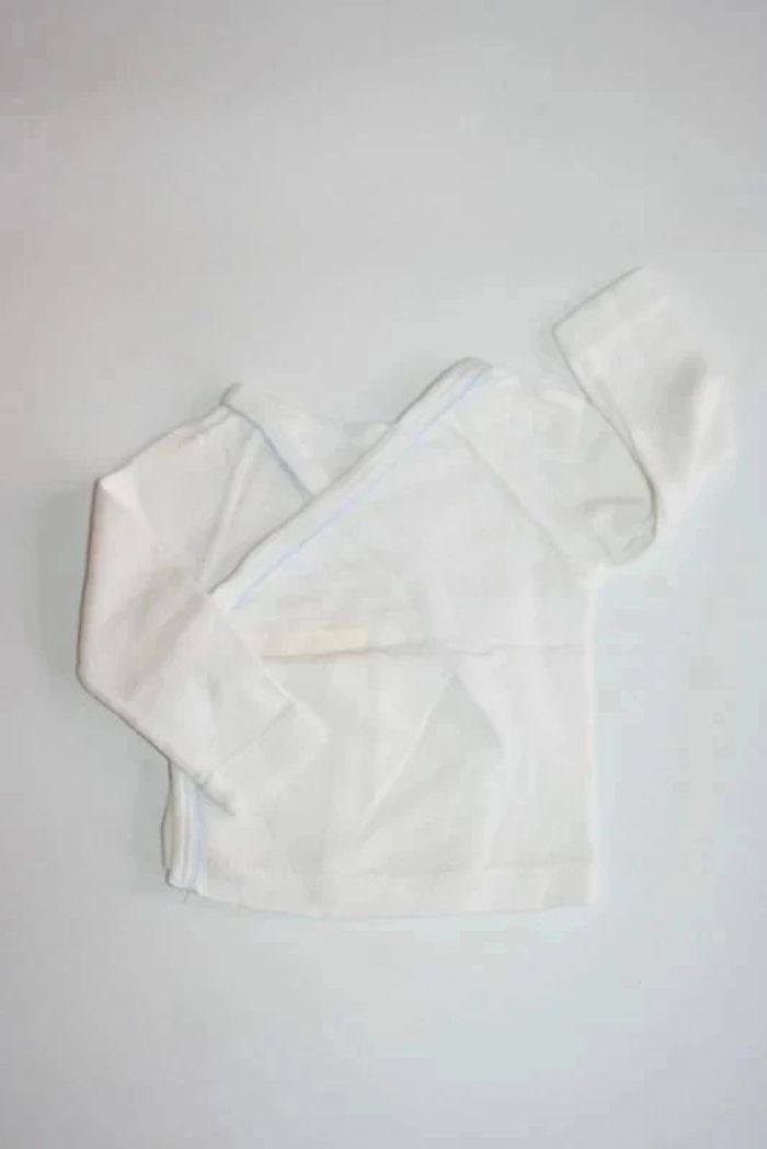 Brassière blanche Absorba motif canard bleu dans le dos, fermeture par scratch, taille 3 mois, 40g