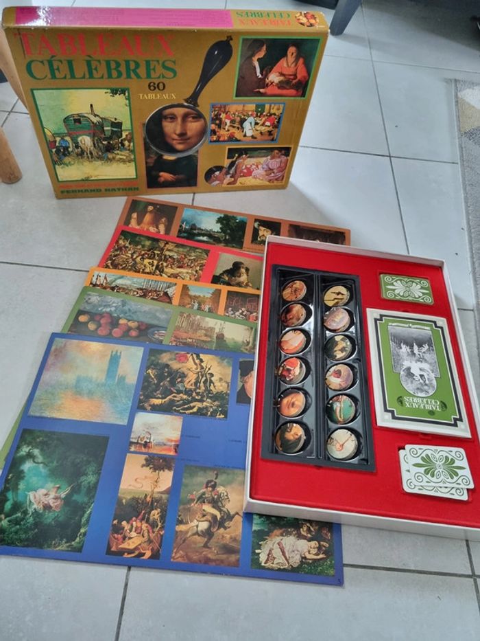 Plus de 50 jeux de société en vente : #JeuPascalb78 (négociation ou remise sur lot) Jeu de société "Tableaux celebres", complet sauf au niveau des planches de tableaux, il en manque une. Tout le reste est OK. Boite avec traces d'usures (voir photo) et quelques traces sur les planches parfois (voir photo). #jeu #jeux #jeudesociete #tableauxcelebres #FernandNathan #JeuPascalb78