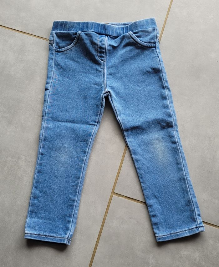 Jegging, de couleur denim, de la marque Kiabi, taille 36 mois (94 cm), en très bon état. Article lavé pour la vente.