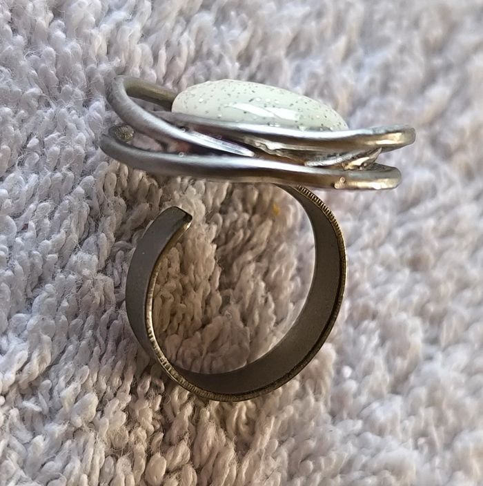 Bague ajustable, blanc pailleté, Taille de 54 à 66 env - photo numéro 9