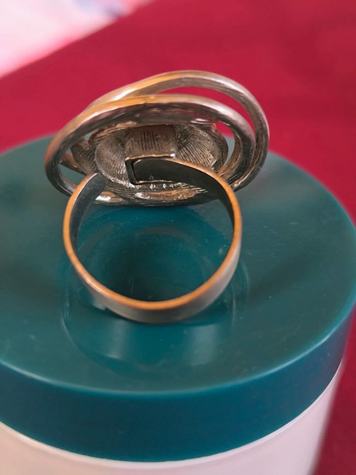 Bague réglable. Diamètre : entre 1,7 et 2,1 cms Poids : 11,20 g