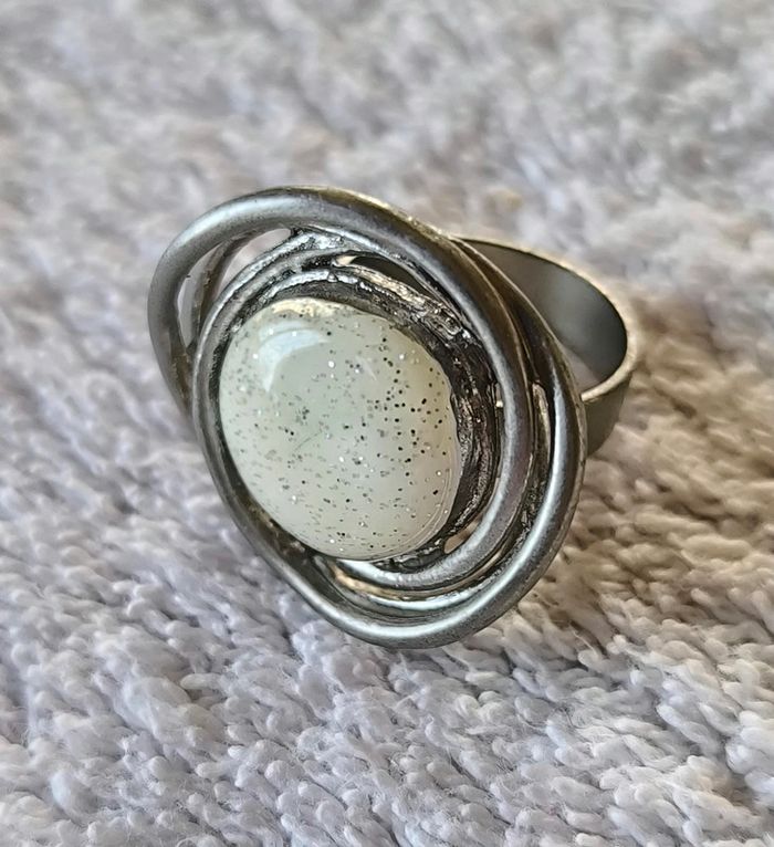 Bague ajustable, blanc pailleté, Taille de 54 à 66 env - photo numéro 2