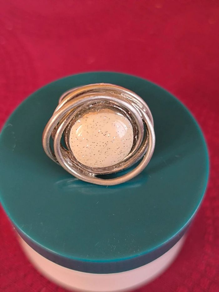 Bague ajustable, blanc pailleté, Taille de 54 à 66 env - photo numéro 1