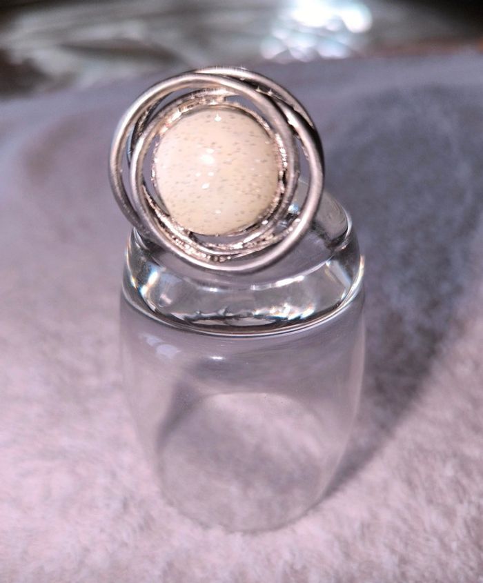 Bague ajustable, blanc pailleté, Taille de 54 à 66 env - photo numéro 4