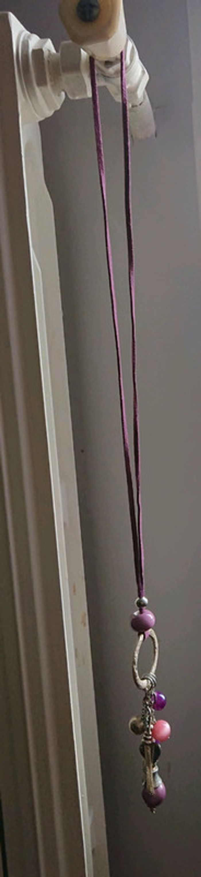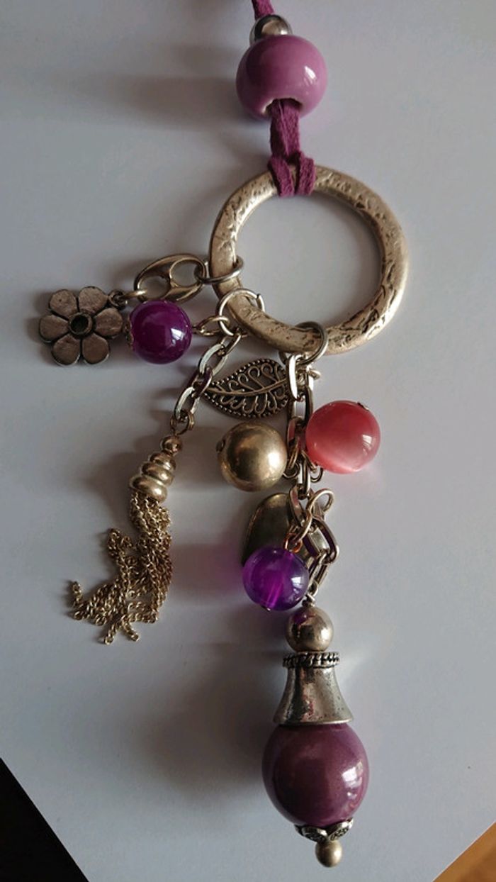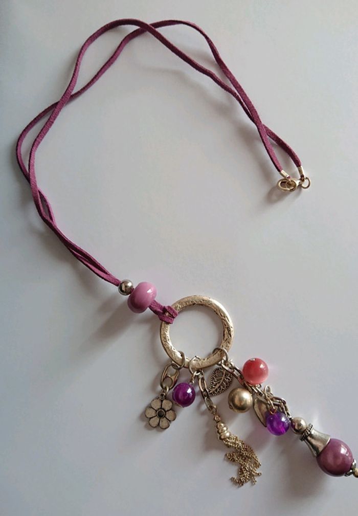 Collier long fantaisie tons violet - photo numéro 1