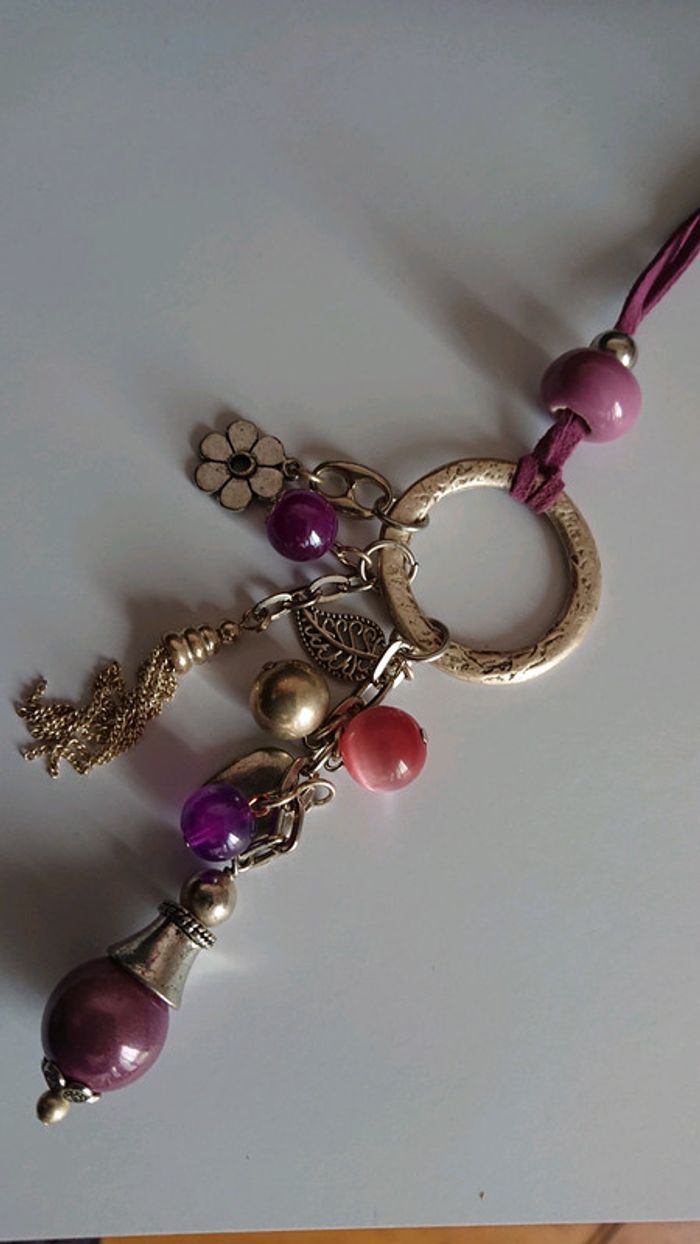 Collier long fantaisie tons violet - photo numéro 2