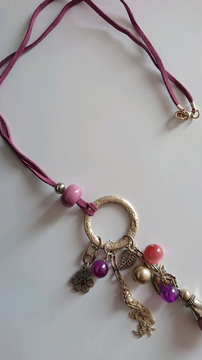 Collier long fantaisie tons violet - photo numéro 3