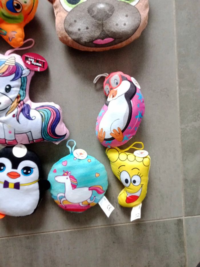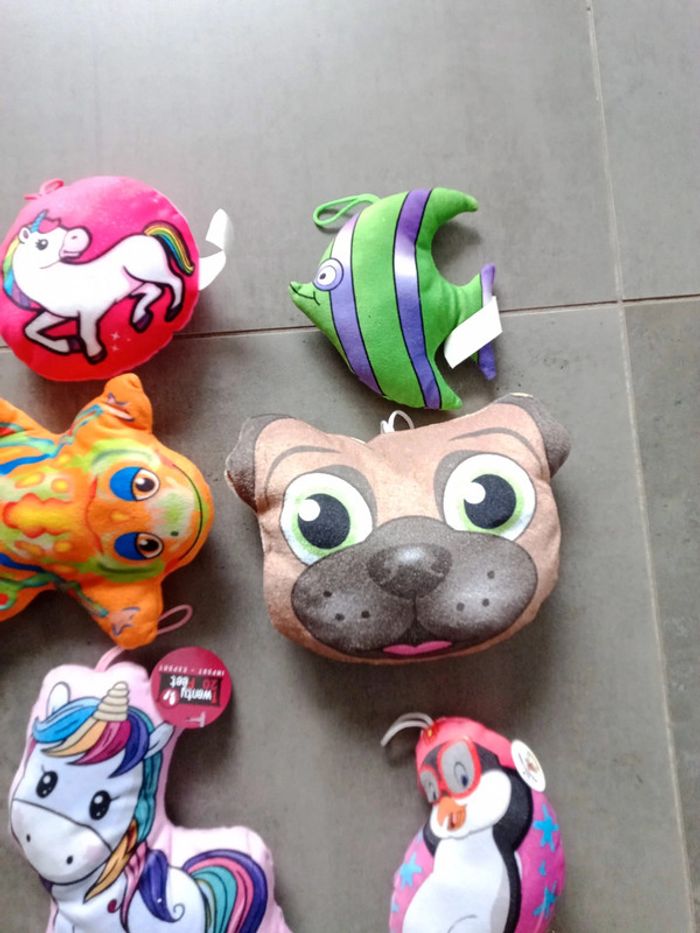 #pelucheslucie59166 5 neuves avec étiquette 4 neuve sans étiquette Licorne, poisson, grenouille, pingouin, chien carlin, pied