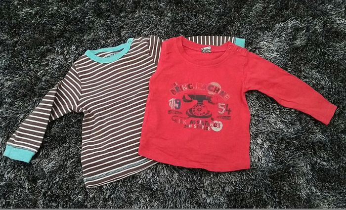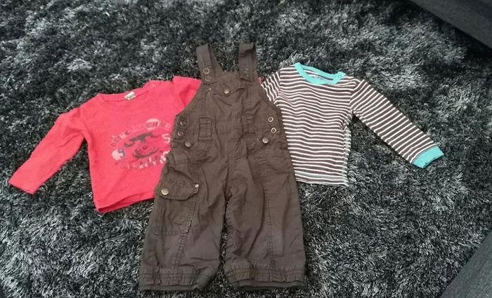 TAO - Tape à l'oeil Salopette doublée - décolorée à certains endroits Boutons entre jambes + 2 t-shirts manches longues Bébé garçon #12moisgarçonlucie59166