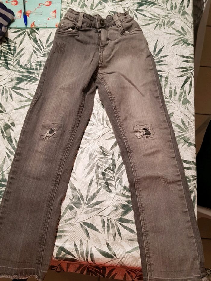 Jean garçon orchestra taille 10 ans Tres bon état faux trous au niveau des genoux et aspect décousu sur le bas du pantalon. Boutons avec élastique réglable à la taille