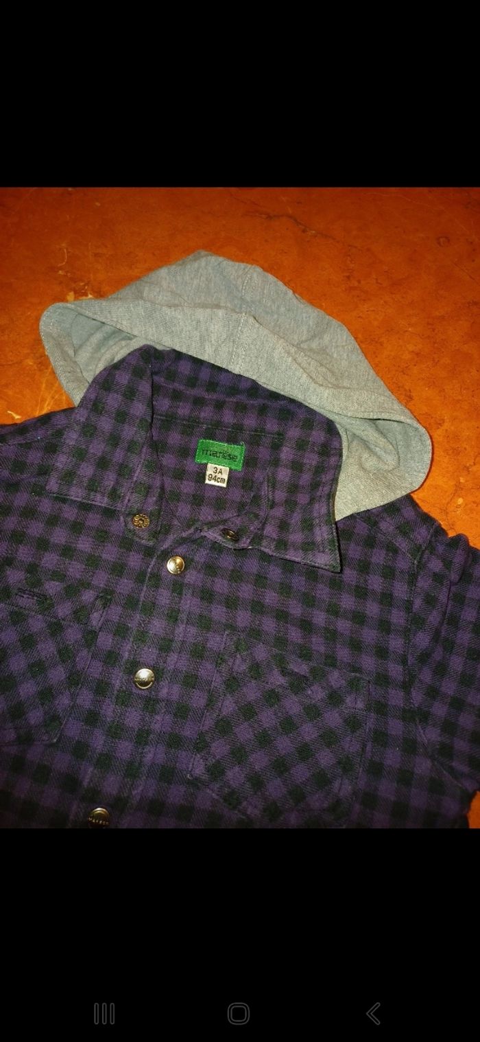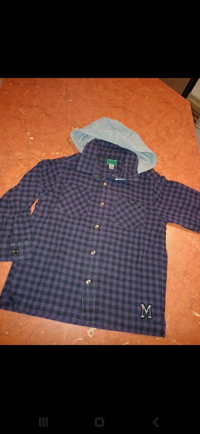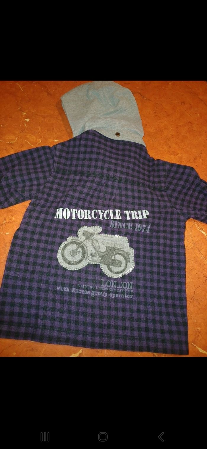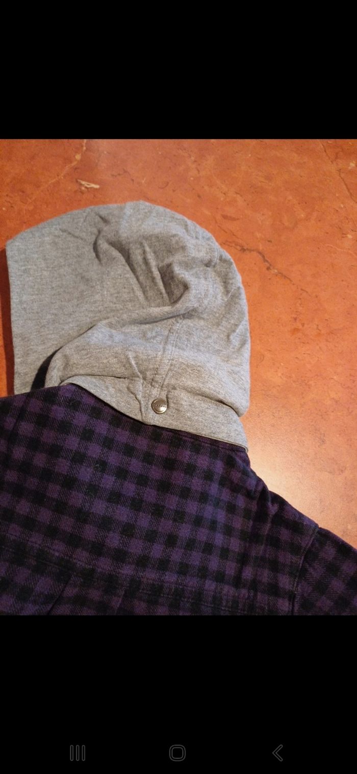 Chemise manches longues avec capuche ( possibilité de la retirer par système de pressions). Fermeture par pressions à l avant. Motif à l arrière