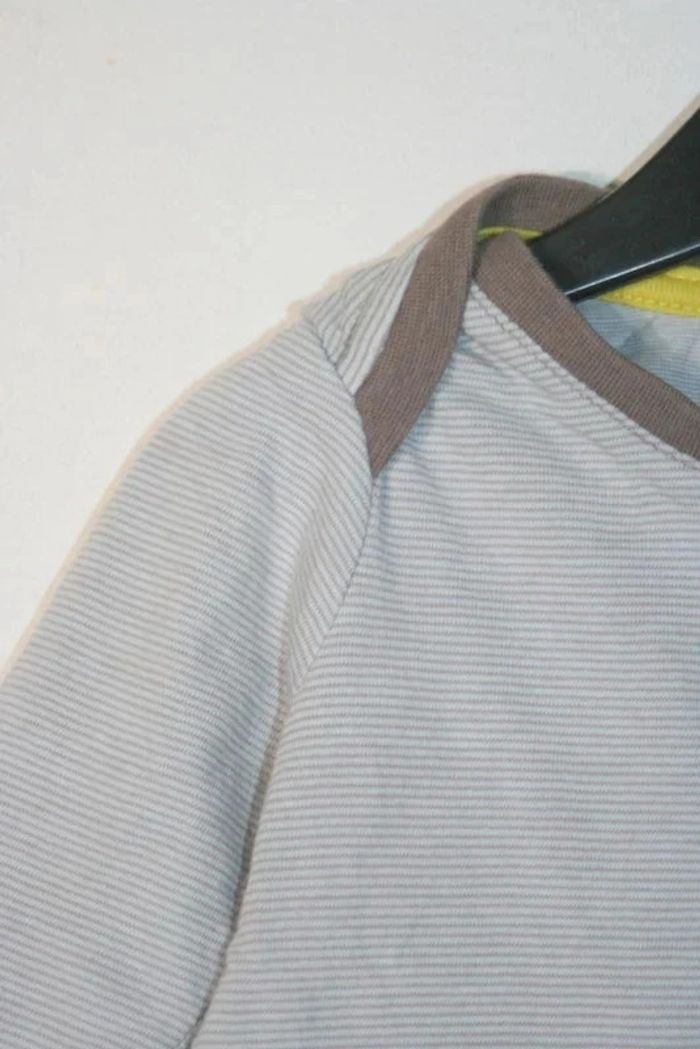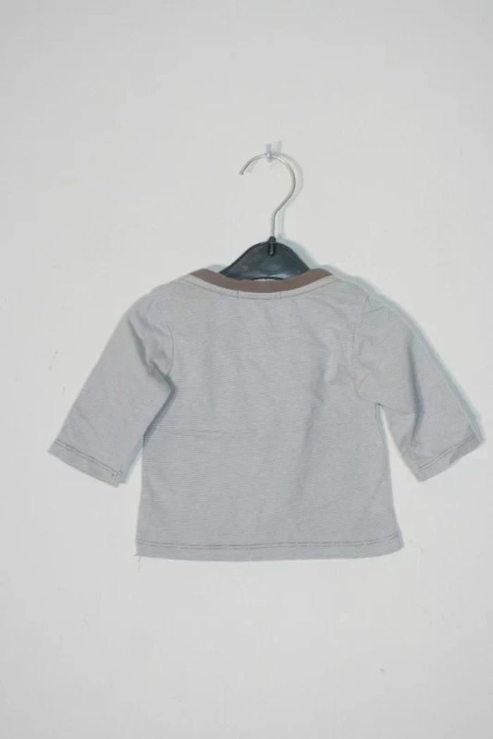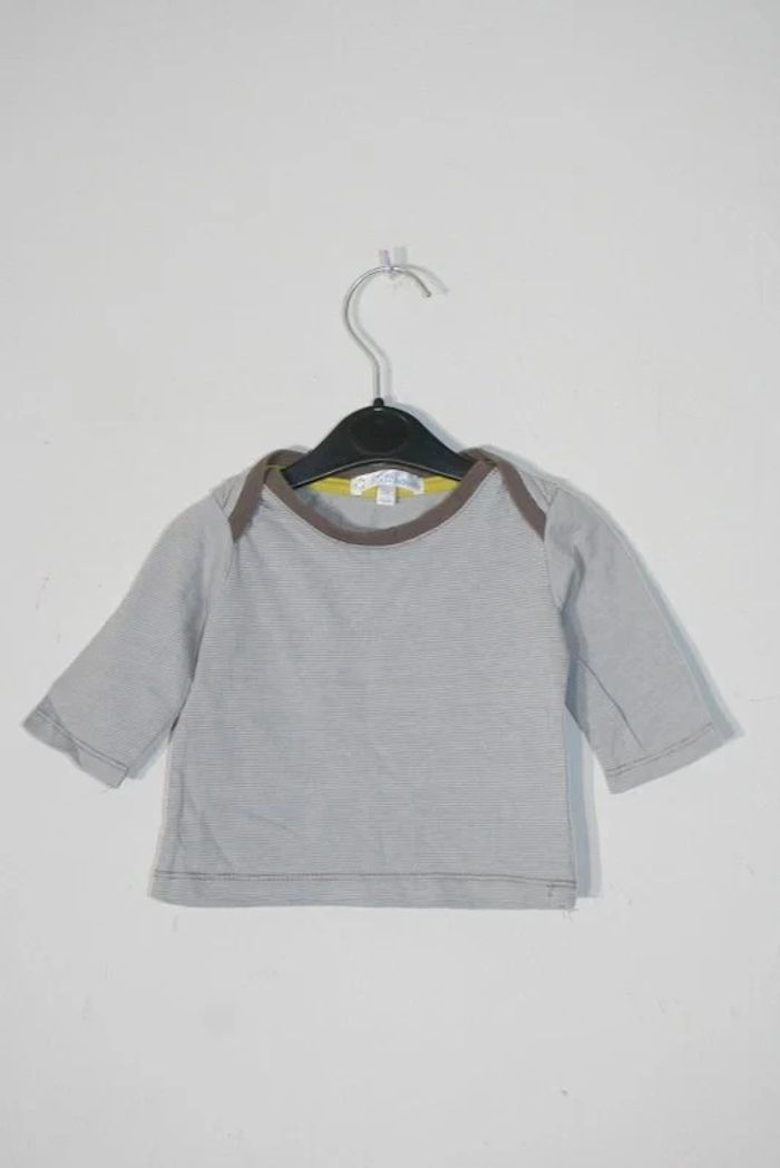 Tee-shirt rayé marron clair Kitchoun 3 mois, petite tâche à l'arrière de l'épaule gauche cf photo, 40g